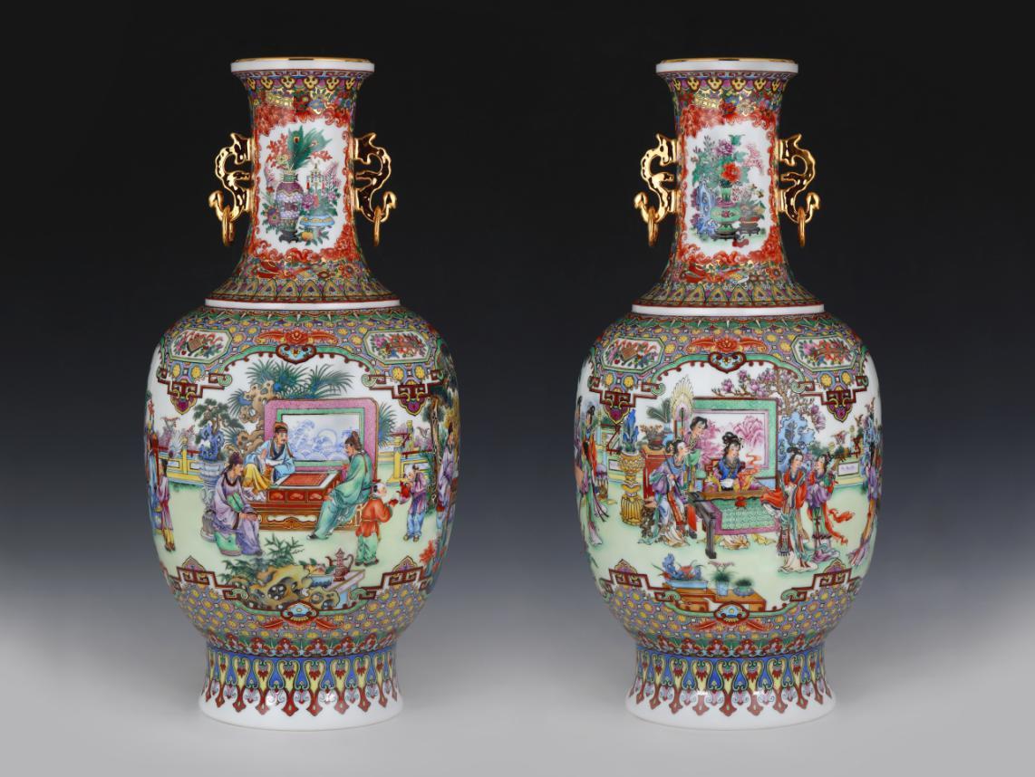 翟惠玲大师从事广彩艺术已五十余年,作品构图大气、色彩明艳,尤其擅长人物描画,既保留了传统广彩的格调,又融入了时代的审美。