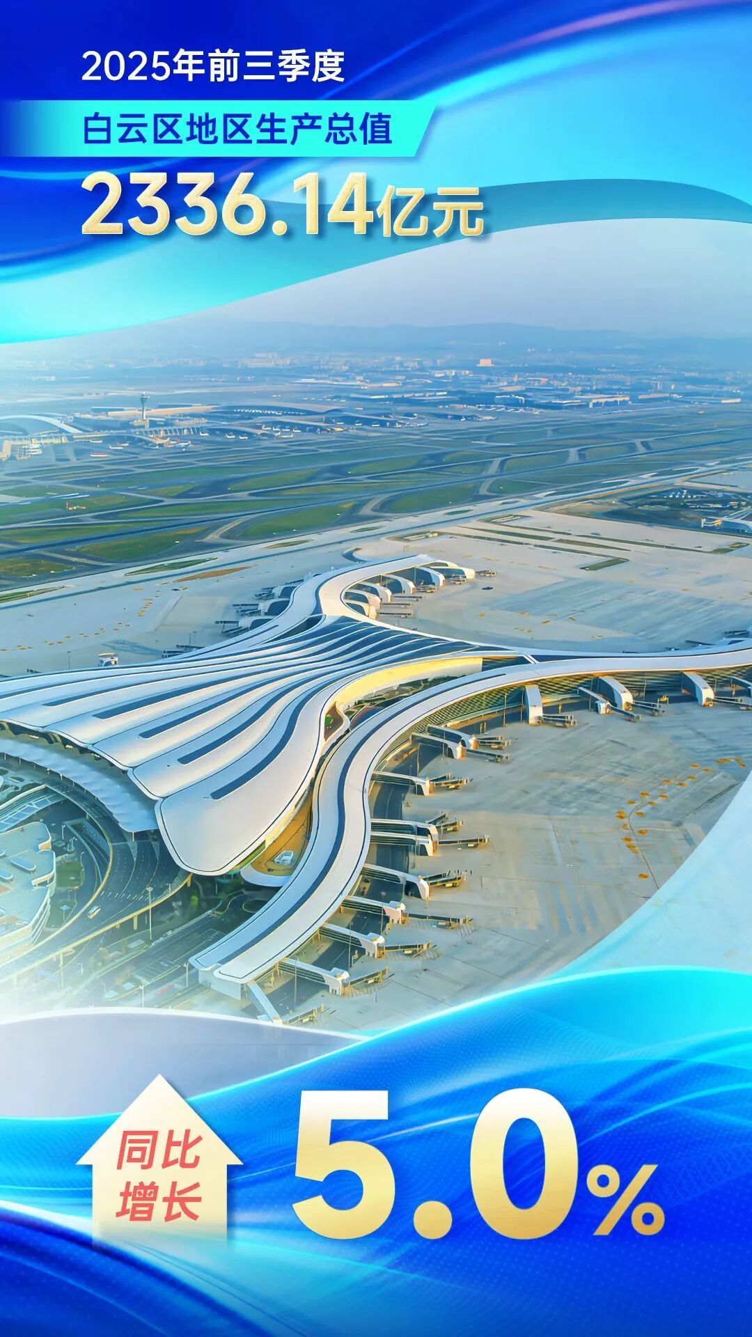 根据广州市地区生产总值统一核算结果,2025年前三季度,白云区地区生产总值为2336.14亿元,按不变价格计算,同比增长5.0%。